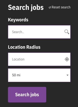 RecPress comes with a location radius based search. Part of this provides a dropdown to users to find jobs within some set distances of the location entered.